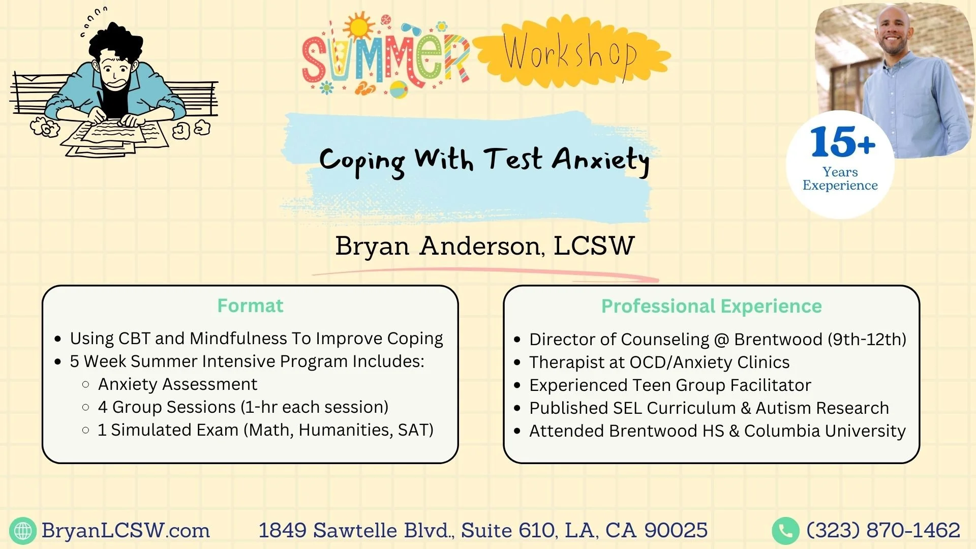 I am a licensed psychotherapist in West Los Angeles with over 10 years of experience working with clients of all ages. My areas of speciality include Anxiety Disorders, Obsessive Compulsive Disorder, Depression, Autism Spectrum Disorder, and Anger Management.